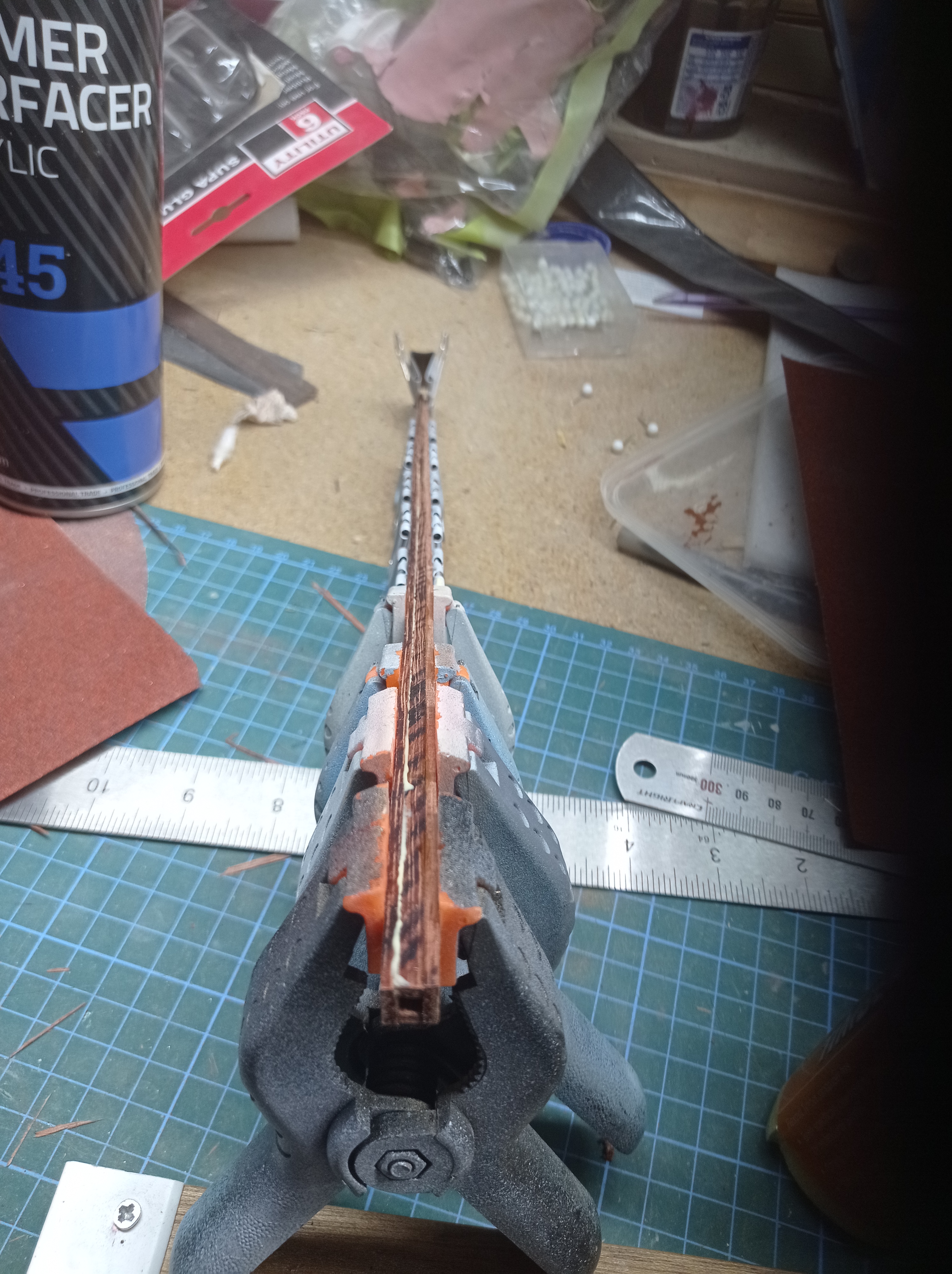 И ещё, в районе клотика пришлось дремелем протачить канавку толщиной 1 мм для того, чтобы вошла игла и было место для провода.