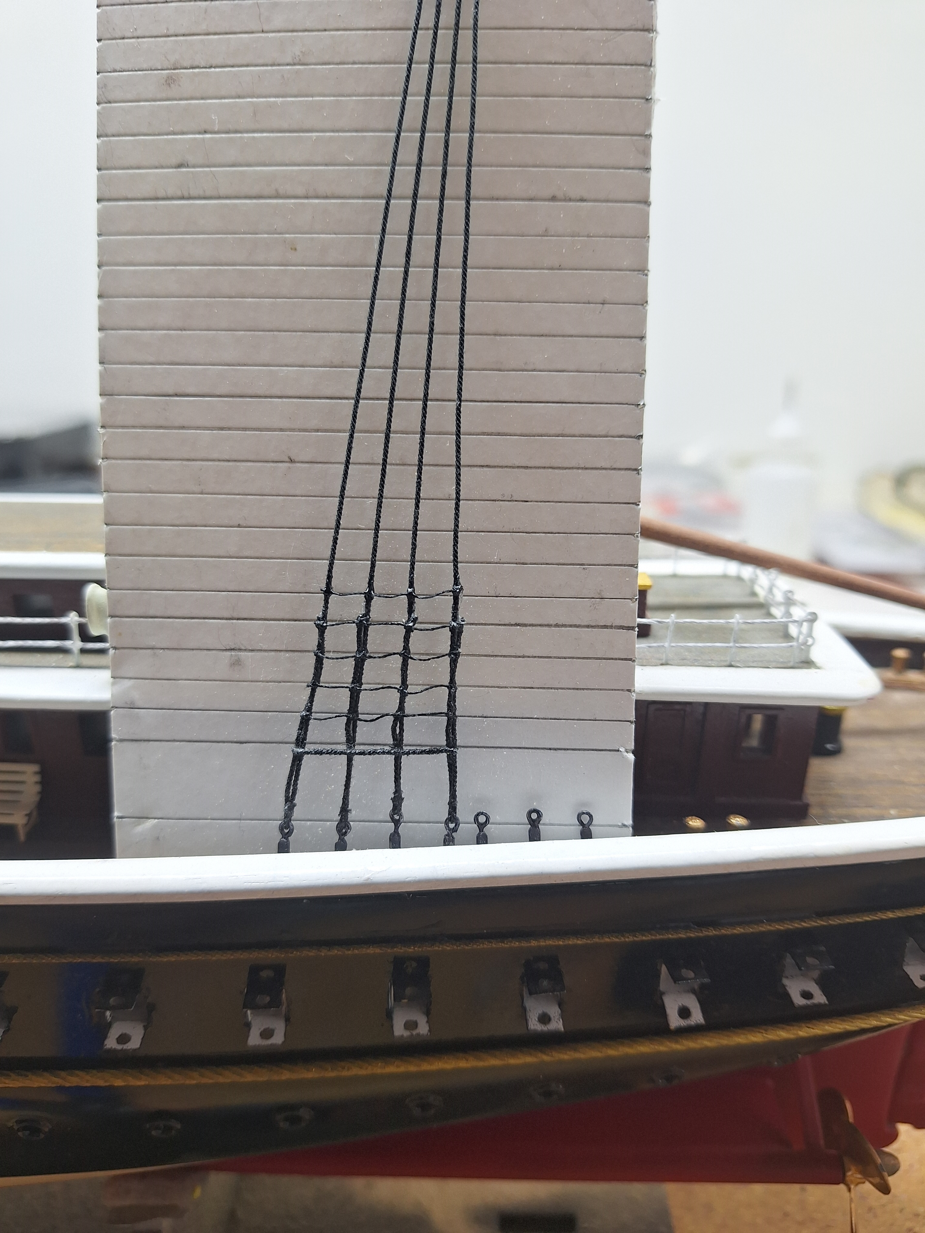Совет у меня к вам только один. Сделайте себе перерыв. Уберите модель на какое -то время за штору или в шкаф, с глаз долой! Возьмитесь за что то очень интересное у будущей вашей модели. Ну на пример шлюпки или орудия вашего будущего линкора - это успокоит нервы. И тем радостней в обозримом будущем будет ваша новая встреча с яхтой Его императорского Величества! Удачи Вам и конечно Здоровья!