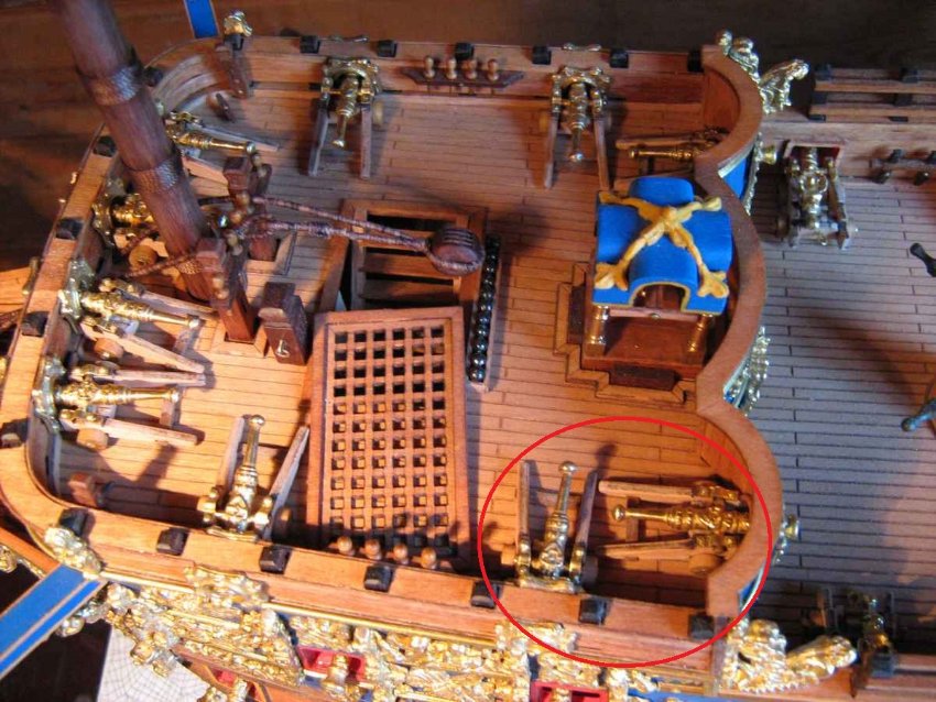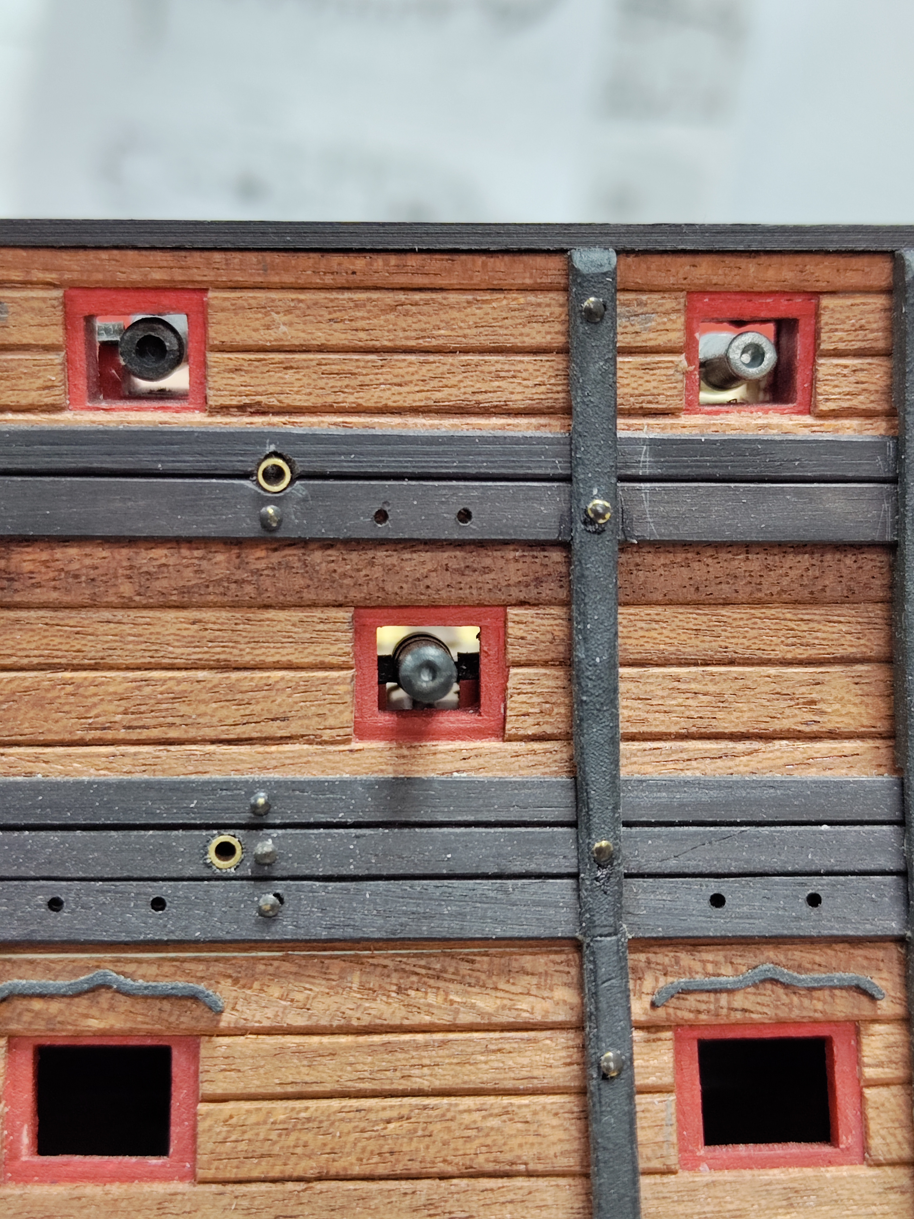 Пушки типа "Е" на шкафуте мне кажется переразмеренными. Я бы поставил вместо типа "Е" тип "G". Диаметр ствола пушки типа "Е" получается довольно большой относительно размера порта. В общем, что посоветуете.