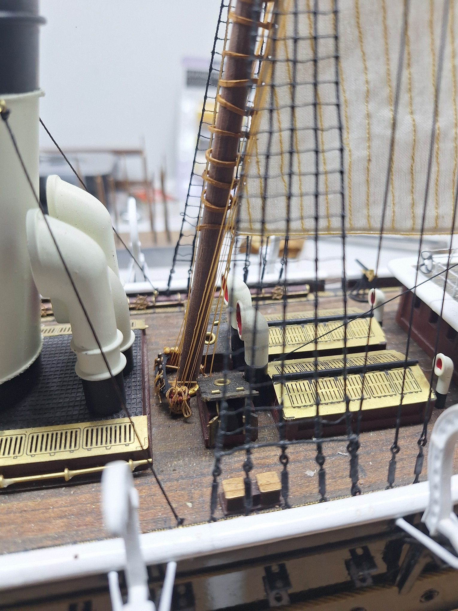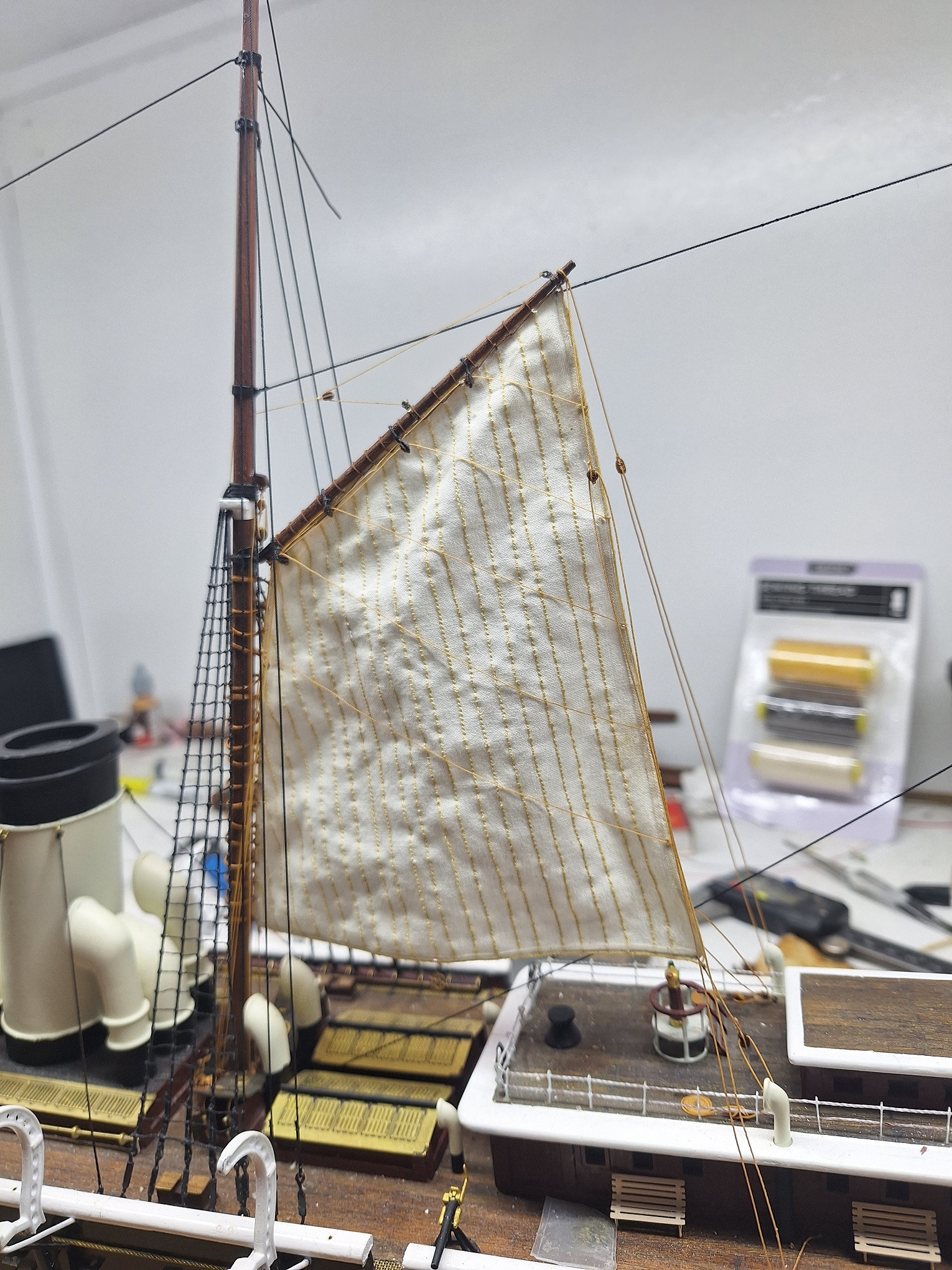 Заключительный геморройный парус, дальше, надеюсь, быстрее пойдёт, пока до шлюпок не дойдёт, но там будет отдельная эпопея: их там много, а литые мне совсем не нравятся!