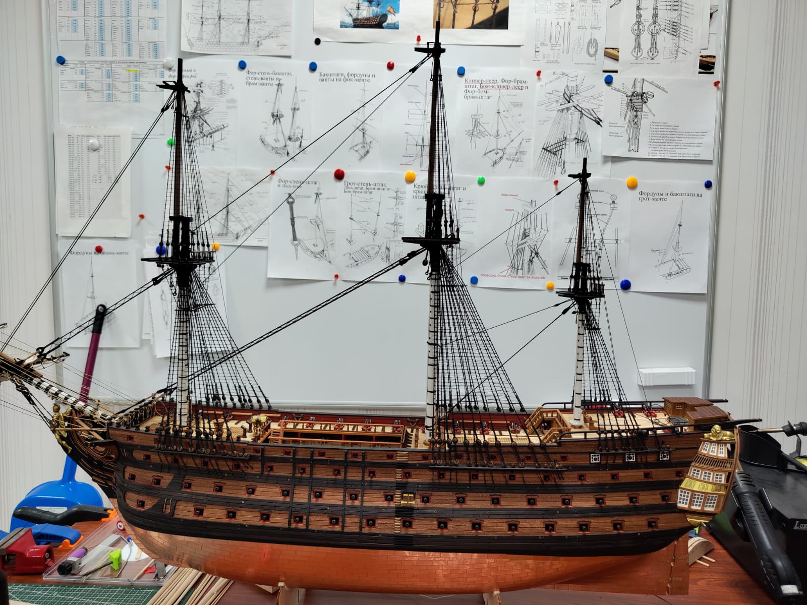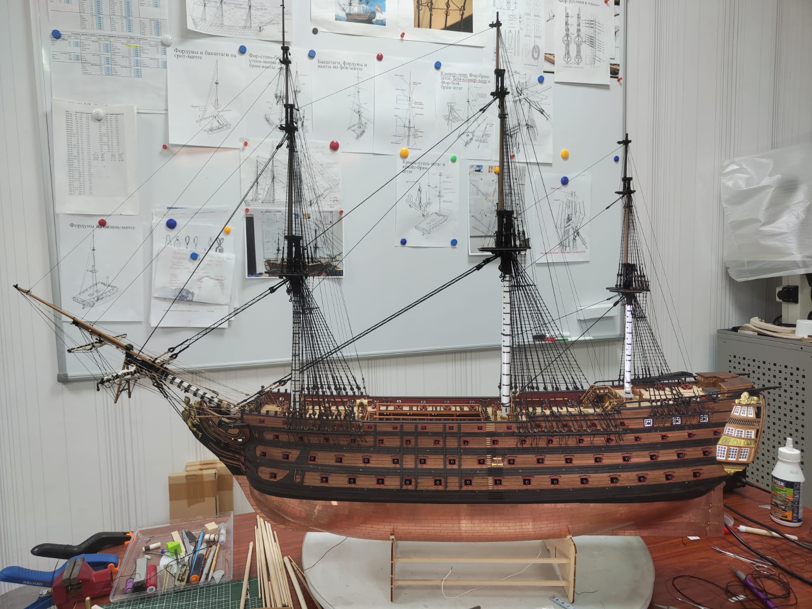 Закончил стоячий такелаж на СТ, за исключением выбленок на вантах бом-брам-стеньгах. Не знаю делать или нет.