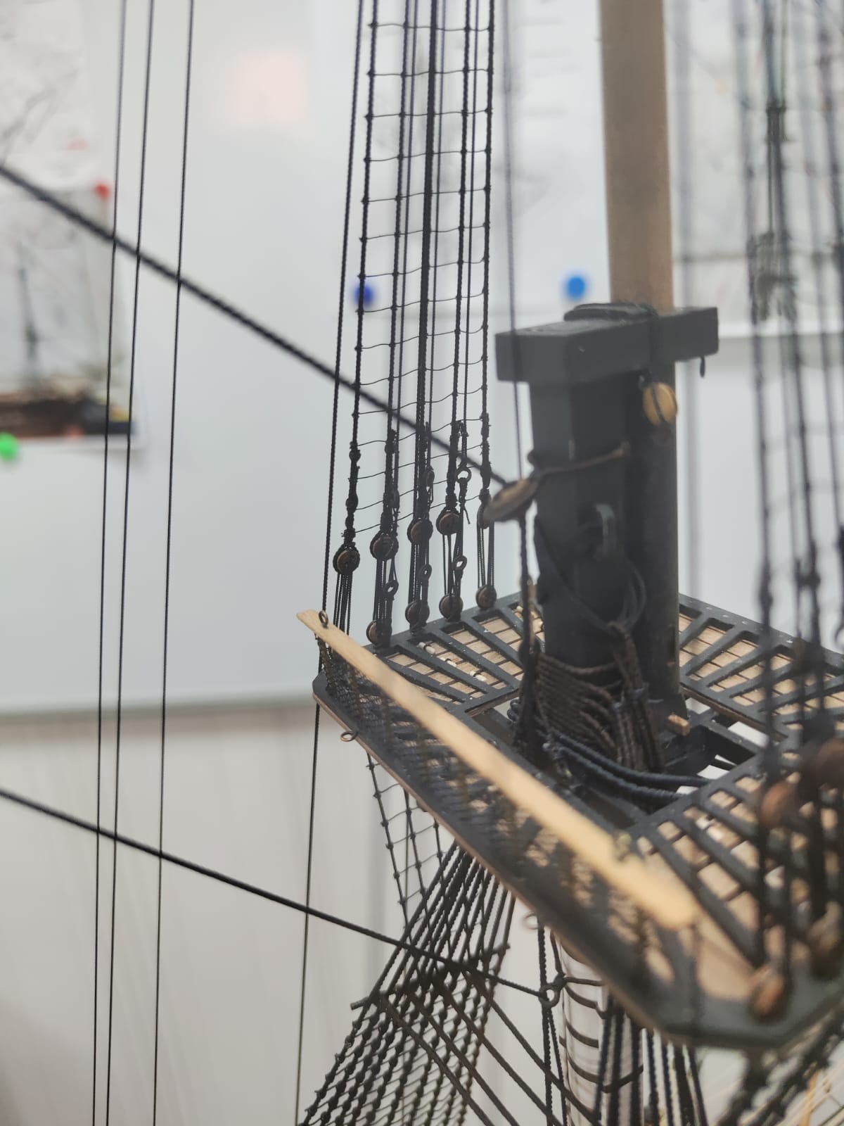 Закончил установку на брам-стеньги вант, бак-штагов и фордунов. Установил все брам-штаги и Фор-брам-леер.