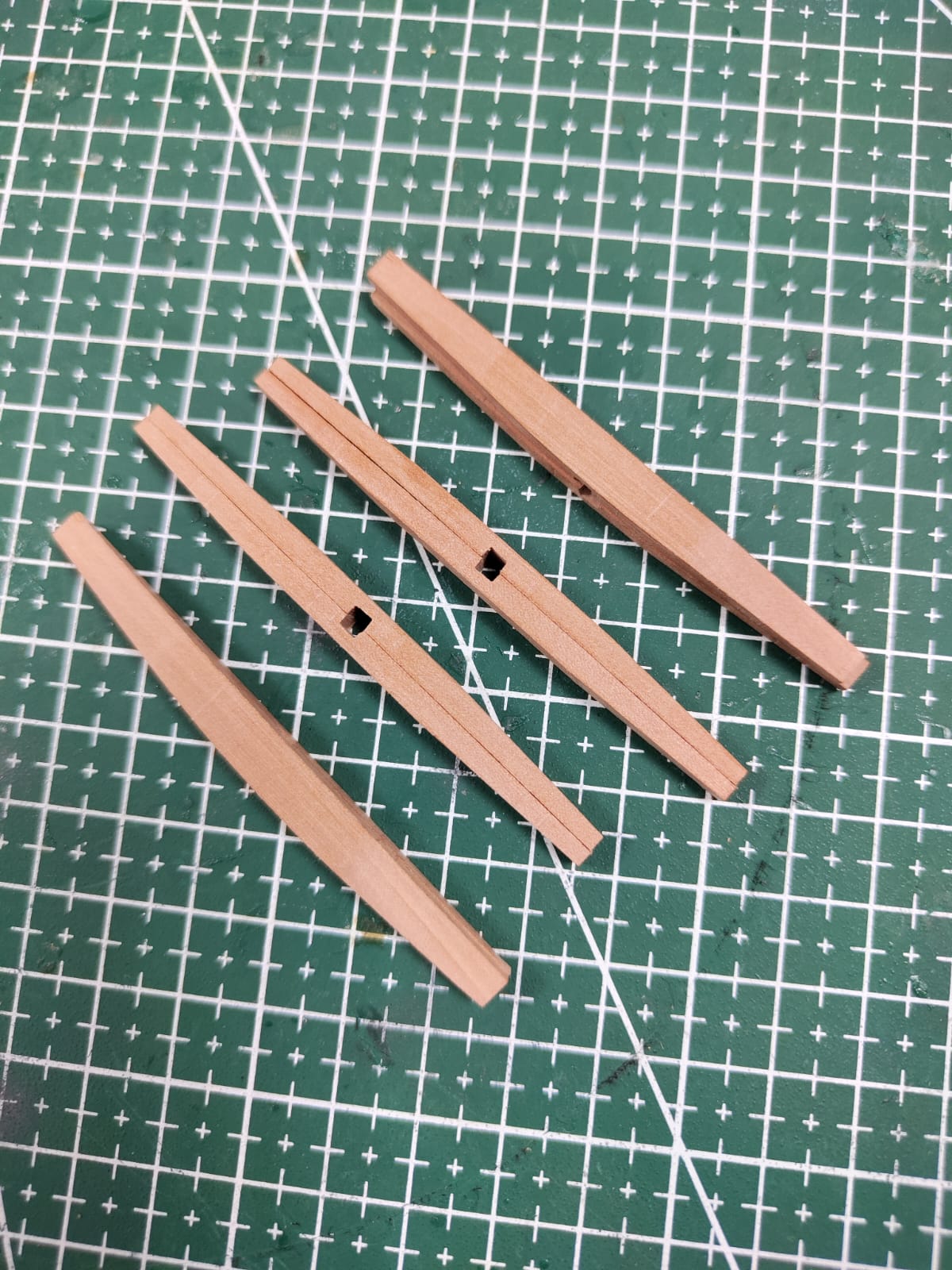 Расстояния между выбленками по Марквардту 13 дюймов, хотя он и пишет что другие авторы указывают и 15 дюймов. При 13" и моем масштабе 1/84 получается расстояние между выбленками должно быть 4 мм. Учитывая свою лень взял 5 мм.
