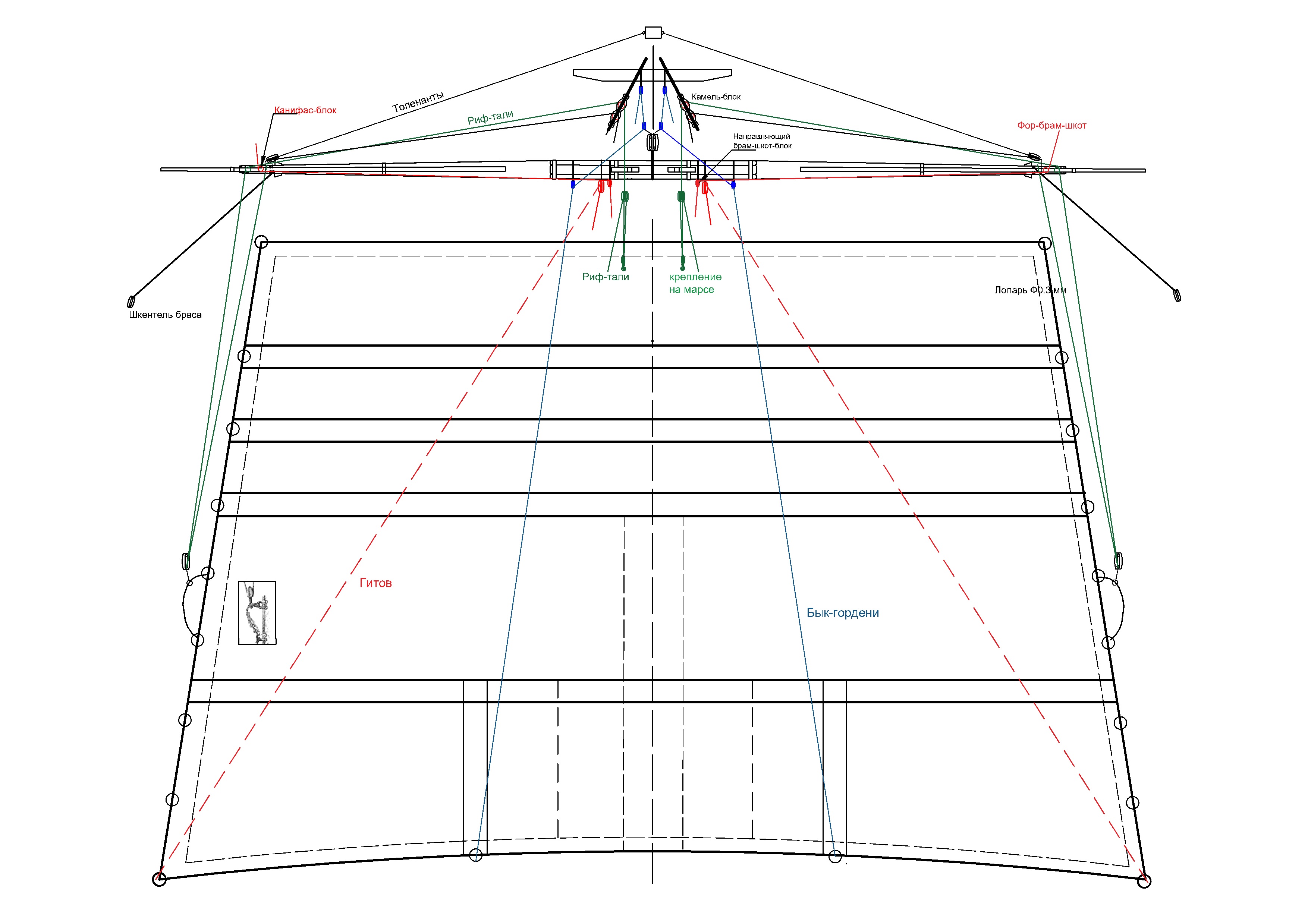 "Да, и на мой скромный взгляд, шкаторины, боуты и риф-бант, всё это не наш масштаб. Очень уж они широкие."