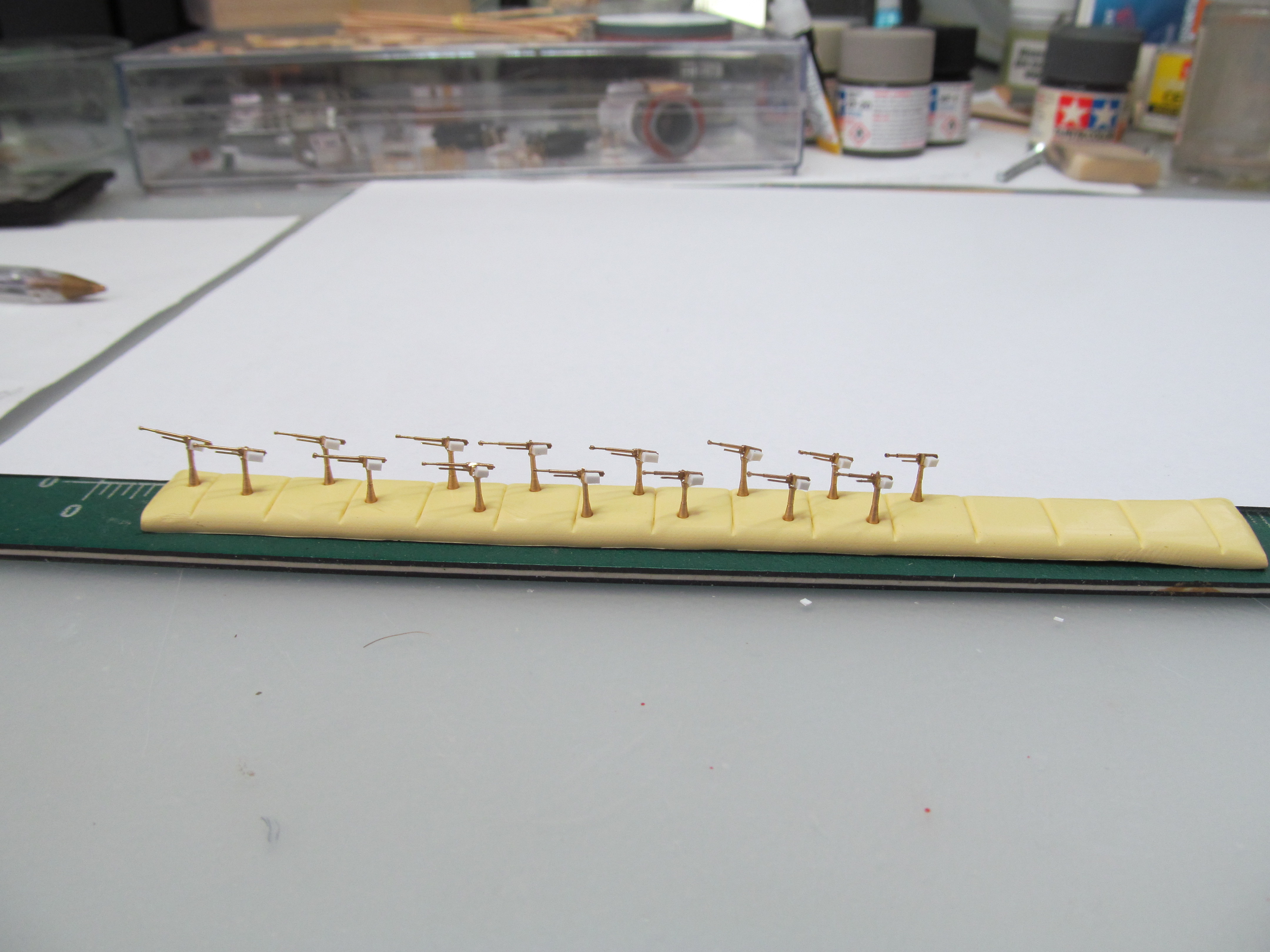 Приклеил основание стеньги к площадке и вытащил пластик.