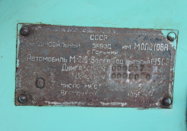 Номера двигателя и шасси основывал на реальной табличке волги 1958 г. в. (отминусовал только несколько сотен). Табличку брал из интернета. Судя по количеству выпущенных моделей первой серии - больше 30 тыс. - мои номера вполне могли быть реальны в конце 58г.
